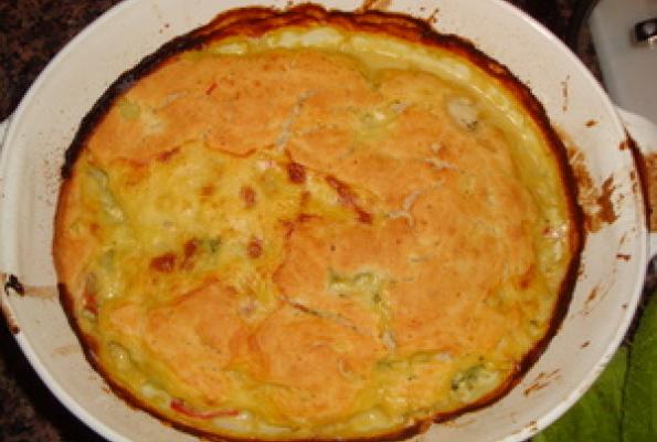 4. Pour sauce over veggies in the casserole dish and mix up a bit. For topping, mix biscuit mix, 1/2 cup milk, and egg replacer with a fork and spread over hot filling. Bake for 20-30 minutes, or until topping is golden and done.