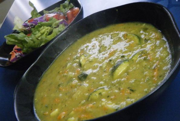 3. Coarsely puree soup ladle by ladle until all is pretty even, and pour back into hot pot. Taste test, and add more spices as needed. When you are ready to serve, stir in the grated carrot. It will be vibrant in color and give a nice fresh texture to the soup. Enjoy!