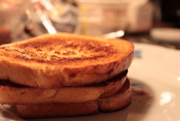 3. Place the bread with mixture on skillet with medium heat. Toast each side until brown.