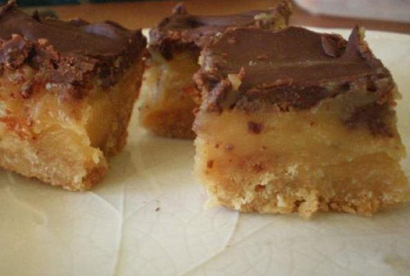 In a medium saucepan melt an 1/8 of a cup of margarine and golden syrup. Add the condensed soy milk mixture and cook over low heat for approx 8 minutes. Place 2 Tablespoon cornstarch in a small bowl, add a few spoonfuls of the caramel mixture and mix until cornstarch is dissolved. Add this back into the saucepan of caramel and heat, stirring constantly until mixture thickens (be careful to scrap the bottom of the saucepan cos the mixture tends to stick there). The mixture should be very thick. If it hasn't thickened enough repeat the procedure with another Tablespoon of cornstarch. Once the caramel is done pour over the base and bake for another 10-12 minutes, until the edges of the caramel are slightly browned. Let the slice cool to room temperature.