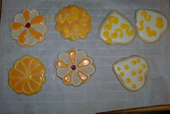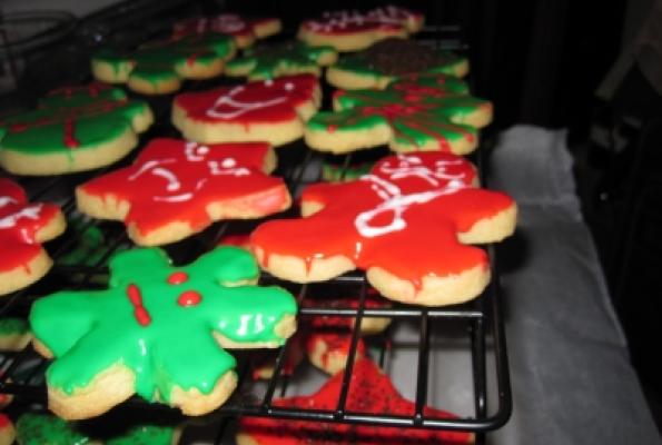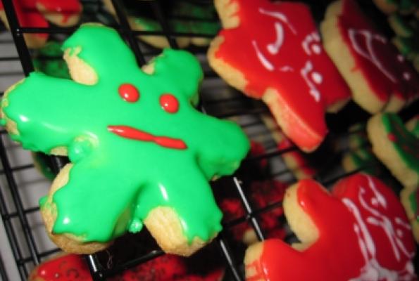 3. Place the shapes on prepared cookie sheet about 1" apart. Bake 10-12 minutes in preheated oven. Set aside to cool completely for frosting.
