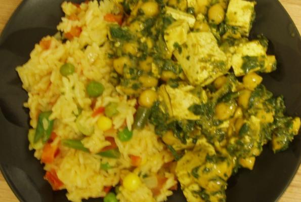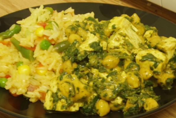 This recipe came into being through me futzing around in the kitchen in an attempt to re-create Amy's (frozen) Palak Paneer. I quickly realized Palak Paneer is something totally different, and I was quite lacking in its necessary ingredients. Instead, I made this. Success? Failure? I'll let you decide.