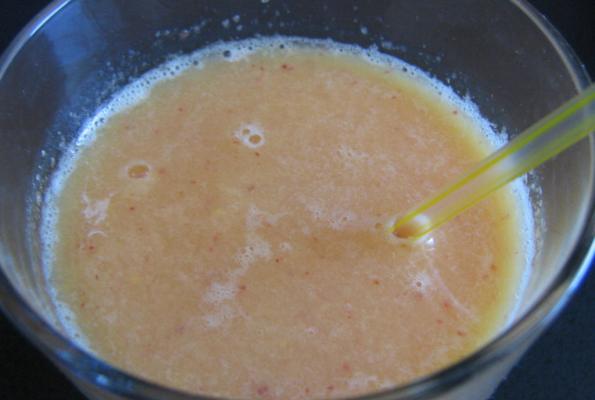 I leave the mango in the freezer until completely frozen, then thaw till next day in refrigerator. It will make a nice and cold-thick smoothie that won't need ice. But if you just can't wait to mambo...put all ingredients in blender with 5-6 ice cubes on high.