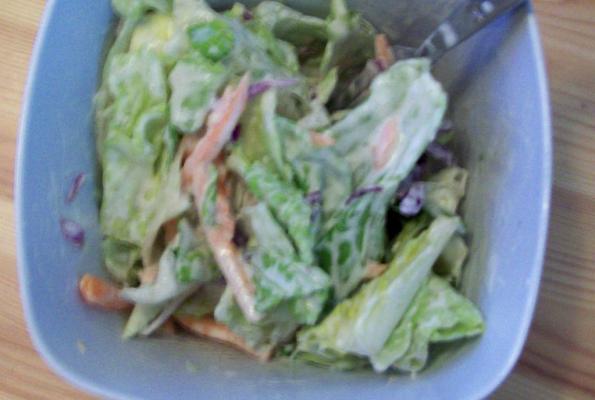I added a bit of oil to the dressing to make it more oily (I like fatty salad dressings). It was very very good. What a blessing!
