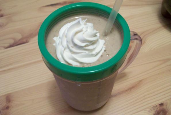1. Put all ingredient except soy whipped cream (bananas, non-dairy milk, cinnamon, and sugar) in a blender. (I used my Magic Bullet - which works awesome for small shakes) and blend until smooth (no chunks).