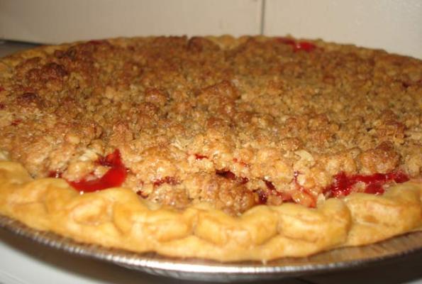I was dying to have cherry pie and the only ones you can get that are pre-made are usually not vegan so I took it upon myself to make one. I've never made a pie before so I was unsure of what to do. Found this very simple recipe and thought I'd give it a go. Oh my god, it's heaven!!! It's the perfect balance of tart and sweet from the cherries and delightful crunch from the beautiful crumb topping. I did one thing different though. All the canned cherry pie fillings you usually find at the grocery store are full of high fructose corn syrup and that turned me off a bit. So I ended up buying 2 cans of tart red cherries in juice. I cooked those in a saucepan with some cornstarch, turbinado sugar and almond extract until thick and poured the mixture into the pie shell. Followed the directions for the crumb topping as specified and baked for 40 min. Came out beautiful and as you know by now tasted wonderful. I'm so happy to have tried it out! :)