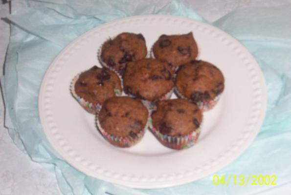Made these muffins this morning and they are really awesome :) Made a couple with chocolate chips and the rest with carob chips. Need to be done with carob!! They stuck a little in the paper cups so maybe need to make with out the paper cups!! ::)