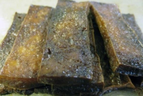 4. Bake for approximately 90 minutes, or until the tofu is dark and slightly shriveled. The finished product will be chewy yet crunchy.