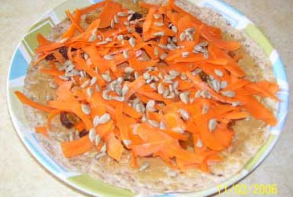 Shred carrot directly onto tortilla and/or shred apple and squeeze so it's not too mushy.