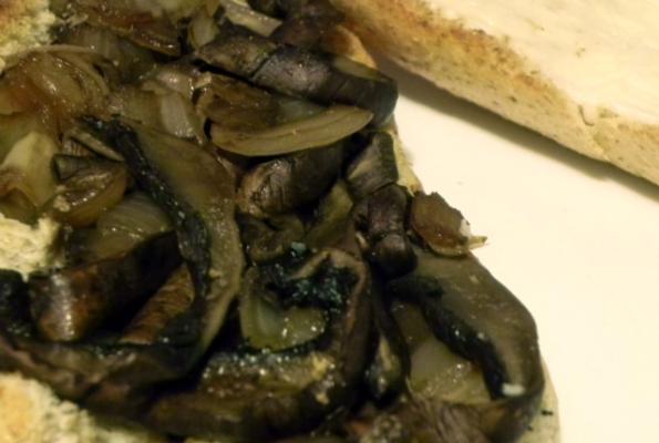 i added a little bit (like a tiny splash) of liquid smoke and a sprinkle of garlic powder to the mushrooms and onions and used follow your heart mozzarella on the sandwich.