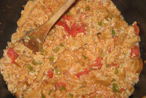 Wow! This was a LOT better than I expected. I made this for my dad's birthday because Jambalya is his favorite... I was really wary of how it would turn out veganized, but it was DELICIOUS, and everyone kept raving about it.