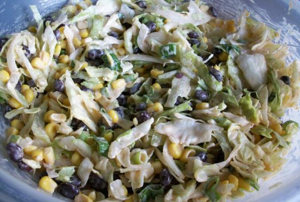 1. Mix lettuce, corn and beans together in a serving bowl.