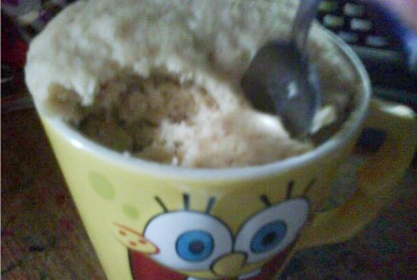 WOW!!!! I tried this cake in a mug. I didn't have all the ingredients (bananas) and I really wanted to add other ingredients (chocolate and maybe some nuts); but this cake is awesome. I really love baked goods, but don't have time to bake or money to buy baked goods on a regular basis. This works with whatever you have in the pantry. I will try it again when I get a hold of some chocolate. Easy clean-up and satisfies my fix for baked products. Thanks ;)b