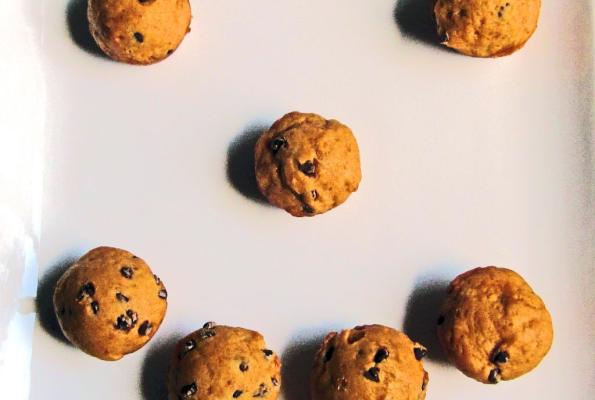 I made mini muffins. Since pumpkin muffins tend not to round out on the top, I used a wet finger to smooth the tops and they baked properly. The baking time took some work to figure out. I reduced the time by 8 minutes for minis, but it was still too much time. I baked them for 15 minutes and the outsides came out hard, but the insides were okay. The next time I think I'd try baking mini muffins at 350 F. I also made Blueberry Bran Muffins, which are moist, so I stored them together so the pumpkin muffins could take some of the moisture and soften overnight. It worked. The pumpkin muffin exterior is now soft.