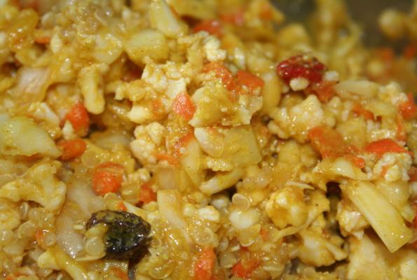 I didn't have any onion left, so I just used carrot shreds and cauliflower....and I didn't add the cinnamon or raisins....