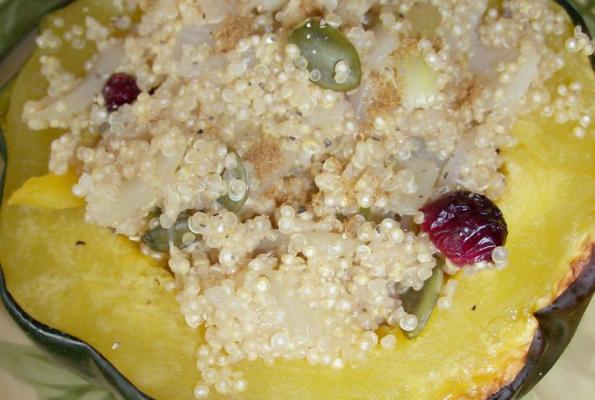 Roasted Acorn Squash Stuffed with Wild Rice, Pecan and Cranberry