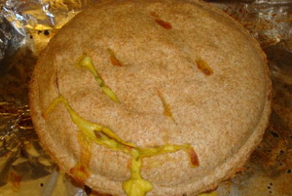 This was delicious but I would definitely spice it up with lots of salt and pepper next time and maybe some other spices. I used the Melty Cheese recipe here on vegweb for the cheese sauce as it is my favorite. I also made my own dough using the empanada dough recipe from Viva Vegan.
