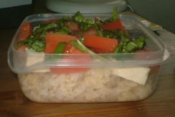 Tomato, "Mozzarella", Basil Brown Rice Salad