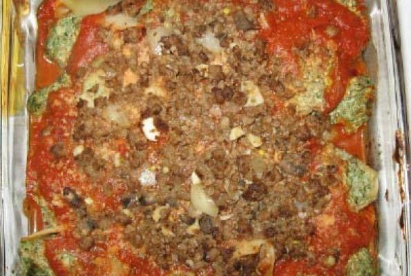 Sauté the onion in a little Olive Oil till it becomes translucent, but not browned then add the garlic and sauté for just a minute more. If using frozen spinach just defrost the spinach do not cook. If using fresh spinach steam until the spinach is wilted about 2 minutes in boiling water. Make sure in both instances to squeeze out all of the excess liquid. Add the spinach, onion and seasonings to the Ricotta mixture and set aside. Can be made ahead and refrigerated up to 24 hours.